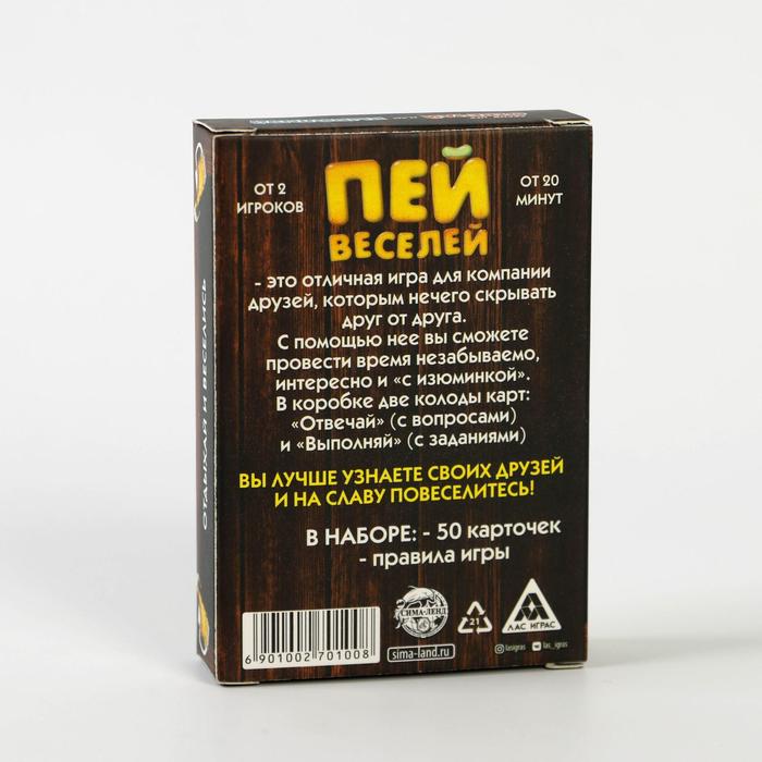 Купить игра для компании "пей веселей" 50 карт от 180 руб. с доставкой до пункта выдачи в Жирновске. Интернет магазин ДекаМаркет. Оплата при получении.